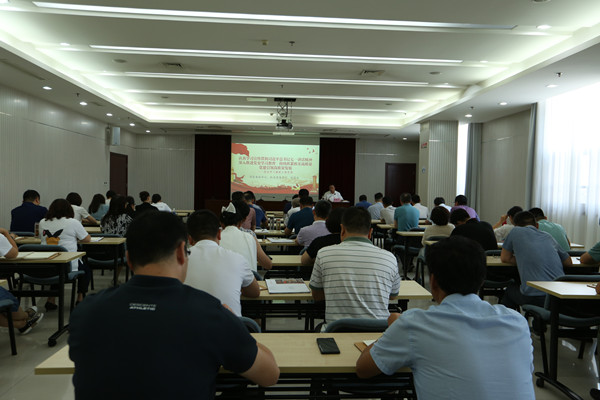 发布时间:2021-07-20按照局党委党史学习教育部署要求,7月15日,局党委副书记、机关党委书记赵昌发作了题为《认真学习宣传贯彻习近平总书记“七一”讲话精神,深入推进党史学习教育、持续抓紧抓实高质量党建引领高质量发展》专题党课宣讲,并对深化党史学习教育,促进高质量党建引领高质量发展提出要求。机关片党支部书记、委员以及民主党派人士共计63人聆听宣讲。