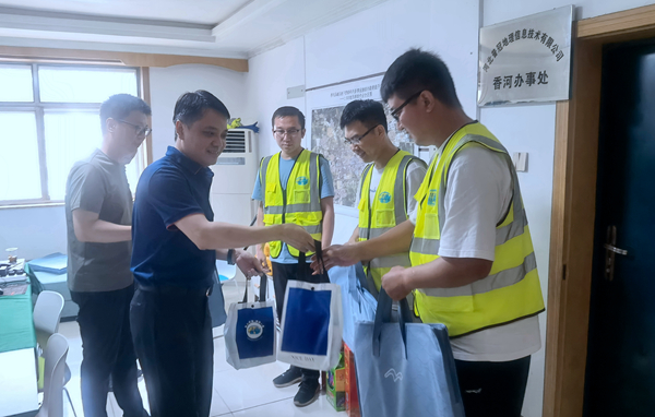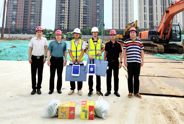 队领导分别前往普冠公司香河项目一线、岩土公司燕郊港中旅施工一线、视通公司通州项目部等,为一线职工送清凉。队领导详细询问一线职工的工作、生活等情况,了解需要大队帮助解决的实际问题,对大家高温中坚守重点项目一线表示感谢,叮嘱职工务必重视安全生产,做好防暑降温工作,严格落实安全操作规程等。
