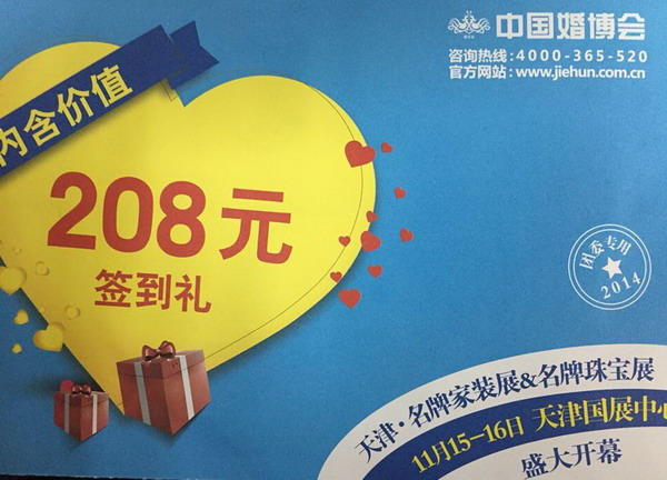 广大华勘青年注意了,中国婚博会将于2014年11月15日—16日在天津国展中心举办了。