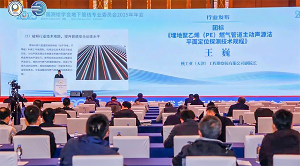 近日,由二四七队工程勘察公司主编的团体标准《埋地聚乙烯(PE)燃气管道主动声源法平面定位探测技术规程》(T/CAS1100-2025),在中国测绘学会地下管线专业委员会2025年年会上隆重发布。