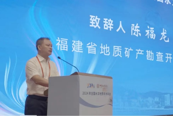福建省地质矿产勘查开发局总工程师陈福龙在开幕式上致辞